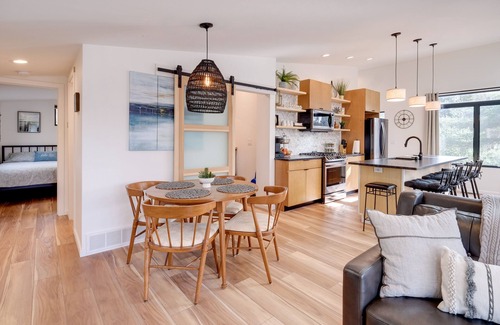Your next lake escape awaits at this Bellaire, MI, vacation rental! Situated on Clam Lake, this 2-bedroom, 1.5-bath home provides an ideal setting for enjoying aquatic activities. Stay on-site and you can enjoy kayaking, boating, and relaxing on the lakefront deck. Venture out on the stunning waters of Torch Lake, dine at Dockside Torch Lake, or visit Short's Brewing Company. Afterward, cook dinner on the grill and have a fun-filled family game night in the modern interior!