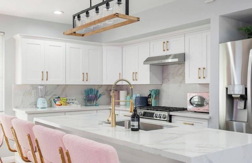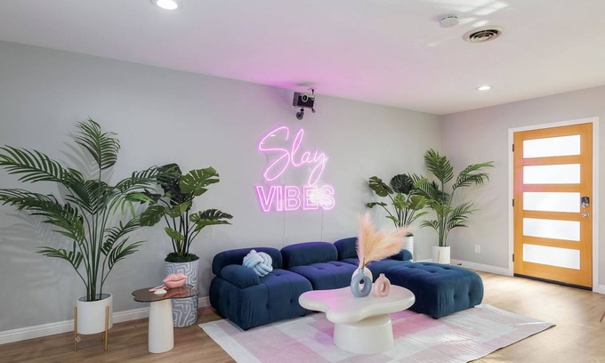 Discover a 4-bedroom Pool House, a vibrant haven featuring neon accents and unique murals in every room. Your private oasis awaits in the backyard, where a refreshing pool and neon lights create an inviting atmosphere. The well-equipped kitchen and cozy living area provide comfort, while each bedroom boasts its own artistic charm. Located in a lively neighborhood, this space promises a memorable stay blending modern comforts with artistic flair. Book now for a unique, vibrant getaway!