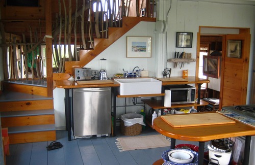 On Crescent Beach and walking distance from both Old and New Harbors, this classic Block Island Cottage is a hidden treasure. One of the three bedrooms is listed as Coastal Living Magazine's "Most Romantic". The open floor plan is perfect for leisurely entertaining or just hanging out. On the grounds, Adirondack chairs surround an umbrella shaded table for lobster dinners or steaks on the grill. A hot-and-cold outdoor shower is snuggled in the flowering bushes, and you can launch a canoe or kayak at the back of the house in the tidal Harbor Pond. No need for a car, you're a stone throw from the beach and a 5 minute walk into town -- where would you rather be? Bird life is everywhere, and swimming, boogie boarding, fishing and beach-combing are right in front of Crescent Beach Cottage.