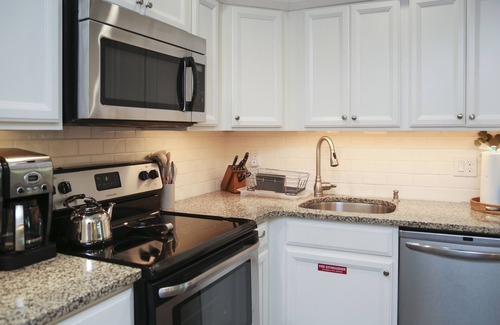 KITCHEN: Fully stocked with stainless appliances, granite counters, Ninja blender, toaster, chef grade knives, coffee/tea bar, etc