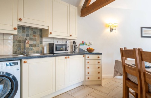 Kitchen is fully equipped with gas hob and oven, fridge freezer, dishwasher, washing machine, microwave, cooking utensils and dining table for 6 guests.