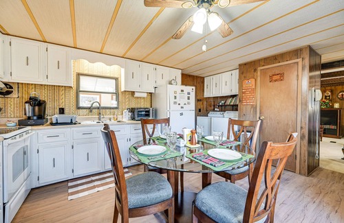 Enjoy a peaceful Blue Ridge getaway, with that retro and rustic feel, when you stay at this Ronda, NC, vacation rental. This quaint and cozy, 2-bedroom, 2-bath home in the foothills features classic furnishings and nostalgic touches, like wood paneling, that encapsulate the vibe of a country escape. Go exploring on 5 acres of private land, catch a NASCAR race at the North Wilkesboro Speedway, or sample local wines at one of many nearby vineyards. Spend the evening relaxing on the covered porch.