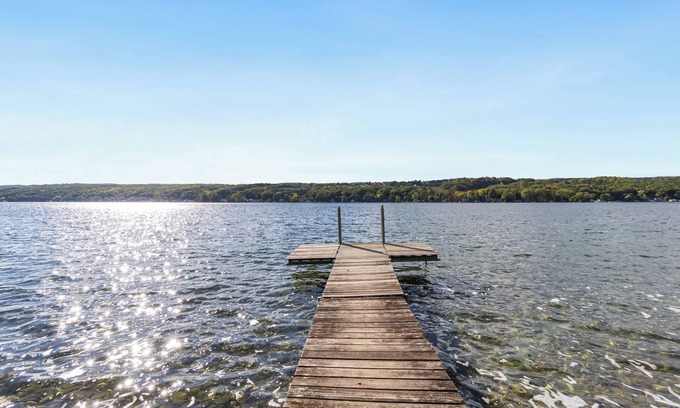 Classic Keuka Lake cottage on 70+ ft of frontage on West Bluff! Enjoy beautiful lakeside sunsets on the lakefront -- on the beach, dock, or waterside deck. This property features 4 bedrooms (a King bedroom, 2 Queen bedrooms, and a bunk room). The lower level has been renovated from top to bottom with one of the Queen rooms, a full bathroom, and bunk room. Plenty of room to spread out between the backyard patio and large covered second story front deck. The open kitchen/living room afford space to relax while cooking indoors. Stay connected with high speed wireless internet and smart TV (in living room, not pictured). Central air!! 2 kayaks and a SUP (stand up paddleboard) available for guest use. Parking for 4-5 cars. Walk to Keuka Lake's Bluff and Garrett Chapel, the Keuka Lake State Park, and a few minutes drive to many of Keuka Lake's award winning wineries and breweries!