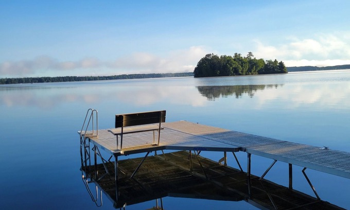 Only 25 feet to the waters edge, you will be transported back in time to the days when the simple beauty of the lake, the sunrise and sunsets on the dock, the gin clear water, views of the island with a pair of loons off in the distance were the most important things.