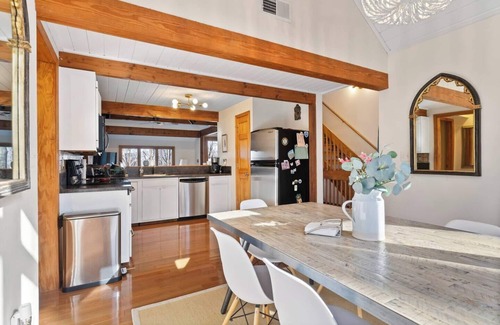 Beautiful as it is, this home doesn't skimp on practicality, either. Strong WiFi (fiber optic service) and streaming TVs. Three Echo Bluetooth speakers. A large laundry/mud room with new washer/dryer and space to store jackets & ski gear is at the entrance of the main level, just inside the welcoming front porch. The home has new central heating and cooling - and two new Mitsubishi mini-split units - to keep your group comfortable in all weather.