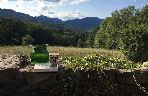 The garden is large, and recently landscaped. The shaded garden terrace is perfect for long lunches. In the evening, we have a cocktail on the west-facing terrace, watching the sun dip behind the distant mountains. We have dinner on the same terrace, sometimes putting something on the big Weber barbecue. For a special occasion, we can arrange a cook. Or you can buy oven-ready lasagna and other local favourites from the deli in Ponte A Poriano. For a memorable evening, book the cook to make pizza on our traditional pizza oven.