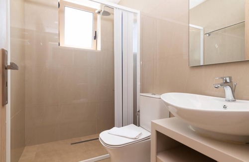 As you climb up the stairs to the first floor, you'll find yourself transported to a world of serenity. The spacious bedrooms on this level invite you with their luxurious amenities, including a comfortable king size bed in one, while the remaining two bedrooms each include two cozy single beds, providing ample accommodation for everyone. To ensure maximum comfort, two of the bedrooms have en suite bathrooms, and all of them offer access to a shared balcony that boasts breathtaking vistas of the surrounding landscape. But the true magic of this villa lies in the charming small attic space, where you'll discover two additional snug single beds, perfect for accommodating children or an extra guest. Whether you're traveling with family or friends, this stone villa promises an unforgettable stay filled with delightful surprises at every turn.