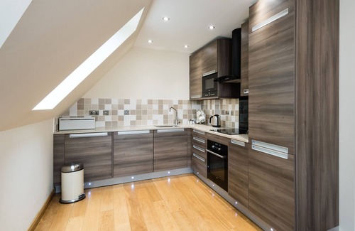 Each apartment provides a kitchen with a refrigerator, an oven, a stovetop, and a microwave. For a bit of entertainment, a flat-screen TV comes with digital channels, and guests can also appreciate conveniences like an electric kettle and a dishwasher.