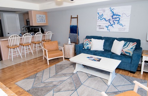 Your lakeside adventure awaits at our impeccably clean two-bedroom, two-bathroom condo at Lighthouse Landing. Book your stay today and be one of our first guests to create lasting memories by the Lake of the Ozarks.