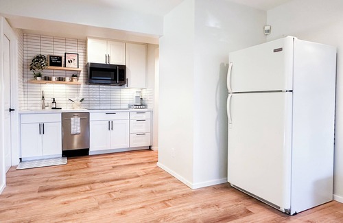 The remodeled ground level apartment is over 1,000 square feet of living space and is private with a separate keypad entry.