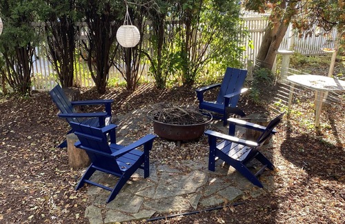 Comfortable, clean and stylish living with spacious living room and dining area. Super cute eat-in kitchen and bathroom have been totally renovated. 2 bedrooms with comfortable mattresses: one queen and one full. Outside spaces are charming w fire pit and bbq grill. Laundry and 1 parking spot included. Short walk to downtown Forest Park for dining and shopping. Easy access to 290, blue line and airport. Small town feel with big city access.