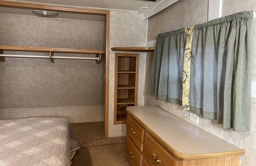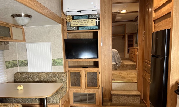 Clean and cozy with all the comforts of home! This front home has a private bedroom with a queen bed, plenty of storage and an option to convert the dining table to a single bed. The kitchen is equipped with a gas range, refrigerator, cooking and dining basics. The bathroom includes towels and basic toiletries. Heating and air conditioning make this sweet little home is comfortable no matter the season. Parking is close to the entrance for quick and easy access.