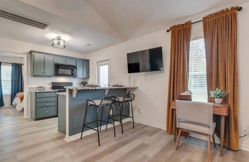 Enjoy a stylish experience at this centrally-located gem. Whether you are traveling to see family/friends, business or simply passing through, this is a great place to call home. We renovated the apartment in May 2021 then topped it off with tasteful decorations. We strive to make your stay enjoyable and comfortable. The apt has one bedroom w/a queen bed, stocked kitchen with Keurig & toaster along with other cooking utensils. One full bath, shower/tub combo, sleeper sofa in the living room.