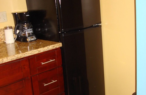 This charming studio with designer touches is comfortable and cozy. Full kitchen with granite counters and cherry wood cabinets and upscale appliances. Completely stocked with dishes, cutlery, pots and pans, linens and towels for your use. The queen-size bed is incredibly comfortable with Egyptian cotton linens. There is a full bath with shower and tub, grab bars, in unit washer & dryer, wifi internet connection, TV and cable, and air conditioning. Enjoy alfresco dining on the lanai. The secure building has a large swimming pool and BBQ area. We also provide beach towels, beach chairs and lite weight cooler.