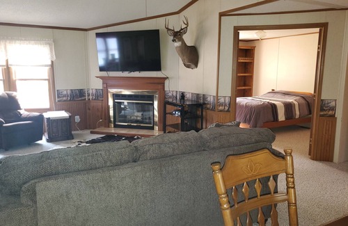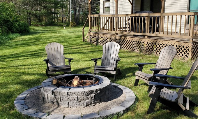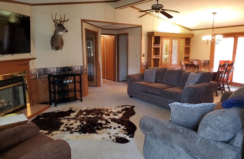Located just on the outskirts of town yet walking distance from the Pere Marquette! Close to all the trails, gas stations ,grocery stores ,golf course ! You will enjoy all the conveniences this property has to offer yet have the privacy your vacation desires !
