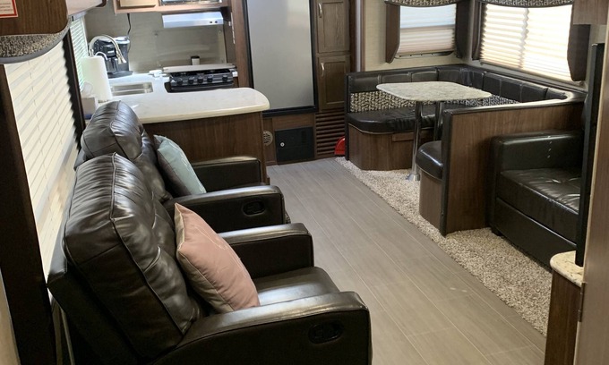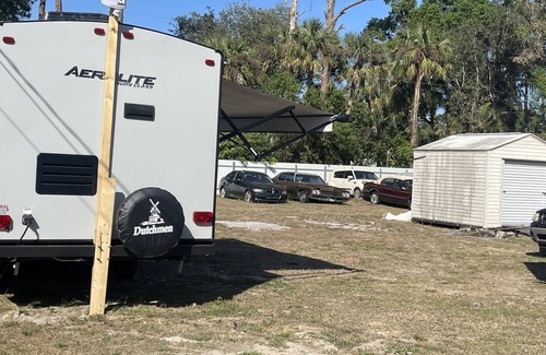 We have a luxury camper that is super comfortable and extremely clean for a short or long term vacation or rental. We are 30 to 45 minutes from the beaches and there’s plenty of shopping within 30 minutes from here. Plus you get to enjoy the sunshine.. it is nothing fancy outside as it is located in our fenced private backyard. There is a patio table and chairs outside to sit and relax or smoke, but our yard is literally just our backyard and my husband is a car collector.