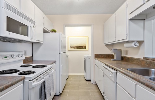 Welcome to our NEWLY UPDATED two bedroom, one bath comfortable condo! Both beds have high end bedding and brand new mattresses! Quiet neighborhood, yet less than 2 minutes to restaurants, shopping, and parks!