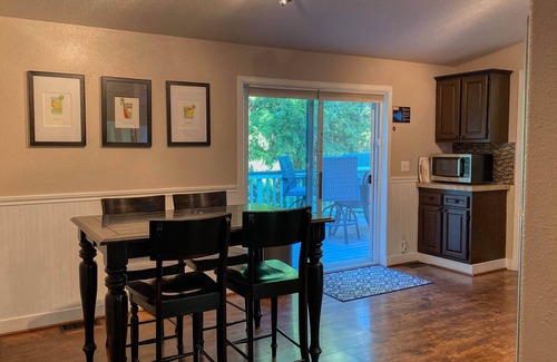 Enjoy the property located on a 3/4 acre parcel surrounded by towering native cedar and douglas fir trees. Our 2 Bedroom, 2 Bath home was manufactured in 2001 was completely remodeled in 2014/2015 with custom finishes for the discerning traveler and the open design and high ceilings take advantage of the 1,300 square feet, providing a spacious home for you to relax in.