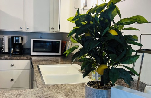 Enjoy this comfortable hidden gem at this centrally-located getaway! This delightful condo is a comfy, sparkling clean place to unwind, relax and enjoy a fresh, restful night sleep in the king bed, queen bed, a queen size memory foam sofa bed, and a pack n play for the little one. 1 1/2 baths.