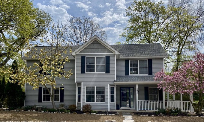 This unique and tranquil lake home isn't a Chippewa "party house" constantly rented out to big groups. Super clean, private, and relaxing, this getaway home is designed for four-to-six adults or visitors who find themselves in Chippewa Lake for a special event or business. A mature, well-trained dog will be considered. Situated on a quiet street with friendly neighbors, this home is just one house away from Chippewa Lake and the community park overlooking the lake. A 15-minute walk (or 5-minute ride) gets you to the beautiful historic Oaks Restaurant for lakeside fine dining with sunsets that rival any you've ever seen! Enjoy your morning coffee on the wooded deck overlooking McCabe Creek or take a refreshing stroll along the lake or on one of the nearby walking trails. No car needed! The kitchen is fully stocked with new cooking utensils, pots, pans, dishes, etc and the home is appointed with new furniture, bedding, and decor designed for your comfort and relaxation. The cheery and relaxing vibe will make you feel right at home the minute you walk through the door. Relax in front the new 55" Bravia OLED TV for streaming favorite shows on YouTubeTV. In the evening, pour a glass of wine and relax on the back deck overlooking McCabe Creek or at the fire pit. A Sonos music system is wired throughout the home, deck and fire pit areas. Two guest bedrooms are appointed with new DreamCloud mattresses and the master bedroom's new Nectar memory foam king mattress will treat you to an amazing night's sleep. The downstairs twin beds are XL to better accommodate adults who may not want to go up stairs. The house is thoroughly cleaned, disinfected, and all bedding is washed, including mattress pads, after every booking in accordance with AHLA SafeStay guidelines. The pantry and linen closets are fully stocked and if you have any special requests before your arrival (maybe a favorite snack or drink), we'll do our best to make sure it's there waiting for you.