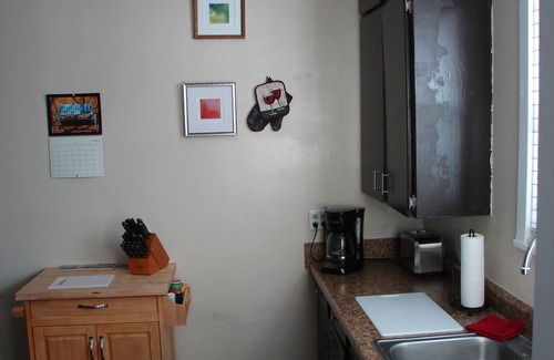 The Ajo Hideaway home itself is historic from the New Cornelia mining days but is very clean, modern and functional. The interior boasts 20 inch gorgeous desert color tile throughout, tile walk in shower and a fully equipped and functional kitchen. The new laundry machines have their own large room on the east side of the home. With large covered front and back porches, there is ample outdoor space for relaxing, barbecuing, and enjoying the sights and sounds of Ajo. Pride of ownership is evident in the Hideway's well maintained look and feel, with a clean and attractive property all around, including a ficus tree. All furniture and beds are high quality. The Hideaway sleeps five with the master sunset bedroom having a queen bed, the guest sunset bedroom has a full bed and in the living room area there is a fold out twin size sleeper sofa. For those chillier desert nights there are electric oil filled radiators for the bedrooms and an electric dura flame fire place mantel heater for the living area as well a cooling/heating unit in the living room. The bedrooms have individual window A/C units. The living space is open, airy and light, and easy to keep clean. The home is filled with beautiful southwestern artwork including many pieces from Ajo local artists. Ajo, and particularly its old Curley school apartment building, is home to many incredible regional artists. Behind the Curley school is the Sonoran Desert conference center with its pretty gardens, some of which are used to grow food for the community in conjunction with the Center for Sustainable Agriculture organization of Ajo.