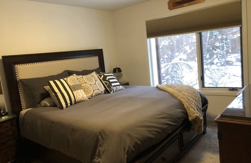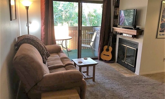 This is a warm and comfortable 1BR 2BA upper level apartment. The spacious master bedroom comes with a comfortable King-sized bed, walk-in closet and full bath. The kitchen is completely equipped and is currently being remodeled (photos pending) with stone countertops, updated cabinets, new microwave and washer/dryer. There is a fireplace and an exterior deck.
