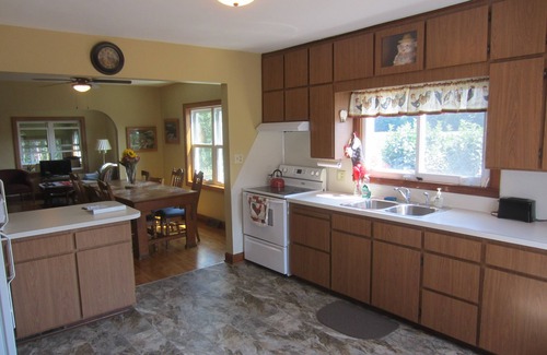 This farmhouse provides a clean, spacious home in a quiet rural setting. It's perfect for a larger family that requires a little extra room. It has four bedrooms, three queen beds and two twin beds. It also has a sofa sleeper in the living room, a futon in the playroom and an extra Trundle bed in the laundry room. The house has two full bathrooms, kitchen, living room, dining room, play room, sun porch and laundry room. It's within twenty minutes or less of Wausau and Stevens Point, Granite Peak Ski Area, Nine Mile Recreation area, Central Wisconsin Convention Center, Central Wisconsin Airport, University of Wisconsin Stevens Point, the Green Circle Trail, and just 2 miles from Lake DuBay.