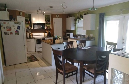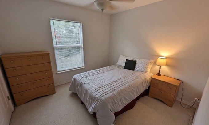 Stay comfortably in Orlando at this 3-bedroom house. The bedrooms feature 2 queen beds and 1 full bed, ensuring a fantastic night's sleep for all guests. Enjoy the serene atmosphere of this property, complete with heating, WiFi, AC, iron, and a hairdryer. With 2 bathrooms equipped with all the necessary amenities, your stay will be nice and convenient. We're happy to assist with any questions while you stay at our house.