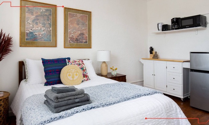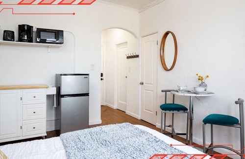 This cozy pet-friendly studio near Downtown Los Angeles offers a comfortable queen bed, fast WiFi, and all the basics including a microwave, mini fridge, toaster, and coffee maker. It's the perfect home base for couples or solo travelers looking to explore the city with ease.