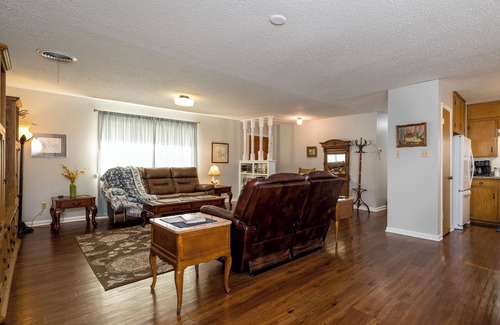 Come stay at the farm, 8 mi S of 1-40, 4 mi E of I-27, in our comfortable, newly redecorated 3-bedroom, 2-bathroom home in south Amarillo. Guests call it “cozy, immaculate, feels like home only better.” Amenities include WiFi and AC, 2 queen bedrooms, one with TV, the cowboy room with TV sleeps 4 in a twin bed and a twin over full bunk bed. The fully outfitted kitchen, backyard grill, and spacious dining room make cooking and dining convenient while the den features a 55" TV, ample comfortable seating, family games, and a wide collection of Western and American war history books. The utility room offers full washer/dryer, wash-up area and leads into the privacy-fenced backyard for pets. There are several outdoor security cameras and ample parking away from the street. This is a relaxing place for star gazing or observe the daytime sky with storms approaching or leaving, sunrise / sunset, astronomical events or just a clear day.