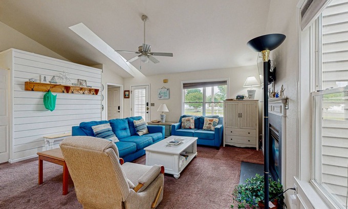 This house is in the peaceful Clearwater community located less than 2 miles from the sand in Bethany Beach. There are sidewalks and side streets for biking and walking. There is an open green space in front of the house for flying kites, playing ball, or having a picnic. There is a free community pool and tennis court. There are two ponds near the house that allow catch and release fishing and plenty of bird-watching opportunities. For your enjoyment, the owners have provided 2 'cruiser' bikes, 8 beach chairs, a beach wagon, and a beach umbrella. The garage is available for guest use and is equipped with an extra fridge for food and drinks. There is also a propane grill for use. There are board games, puzzles, and 2 Amazon Firestick Devices. There is wifi internet. There are three bedrooms: one primary with a king bed and primary bath, one queen room with a walk-out slider to the screened-in porch, and one bunk bedroom with 2 pyramid bunk beds. There is a sleeper sofa in the living room. The common areas are filled with natural light from the skylights, and you can enjoy a beautiful view from the front windows of the pond fountain. Come on over to relax and enjoy Bethany Beach!