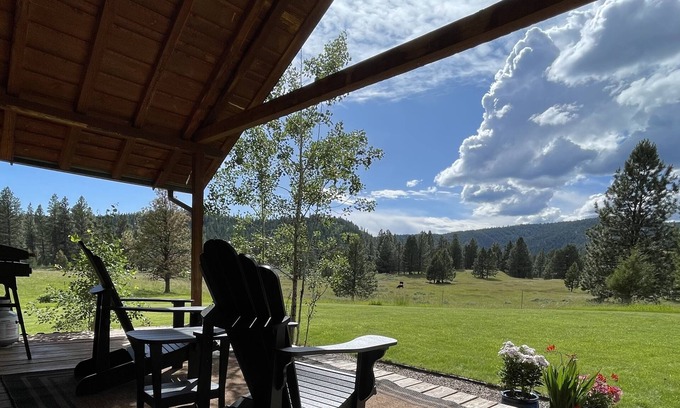 Have a piece of Montana all to yourselves! Mountain meadow views. Quiet and private! Easy access right off Highway 200. Vaulted ceilings with picture windows. Wildlife sightings. Whispering pines. A favorite place for our guests is the porch to enjoy morning coffee, or grill and relax in the evening and take in the views all day long! You’ll be close to lakes, Clearwater and Blackfoot rivers, with hunting and fishing close by. Enjoy juicy burgers at Bayburgers down by the lake in Seeley Lake! For winter visitors, you can cross country ski and snow shoe from the cabin or enjoy groomed Nordic Trails in Seeley Lake, where you can try our favorite steaks at Lindey’s. Located on family ranch land 3 generations of history and traditions. If you look closely, relics of the past are on site and in view. Property is adjacent to the renowned luxury resort at PawsUp Ranch where you can shop as well as dine off season. Garnet Ghost Town is a 30mn drive on scenic mountain road and stop at the overlook where you can see for miles! Take scenic Hwy 83 to ‘The Crown of the Continent’ Glacier Natl. Park….. This place will steal your heart. Come and see why they call this the Last Best Place!