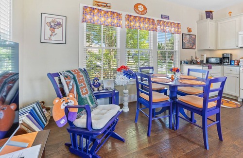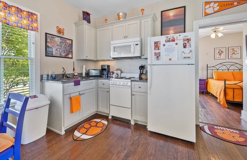 The ultimate game weekend or getaway cottage for Clemson Lovers. Lovely 500 sq. ft. cottage with all Clemson decor is perfect for an avid Clemson fan with everything you will need for a great weekend of Tiger football or just a visit to Clemson. One bedroom with queen bed, nice living area with fold down 3/4 sleeper sofa, full kitchen, large bathroom, washer/dryer, single blow up mattress, free Internet, WiFi, and TV. All linens, blankets, pillows, and towels are included. Located in the beautiful Patrick Square neighborhood with Rick Erwin's, Joe's New York Pizza, Kite Hill Brewery, Clemson Wine Bar, and Sunny Side Cafe just blocks away. We were born and raised in Clemson and have had family here since 1935. We are committed to making your weekend in Clemson a memorable occasion.