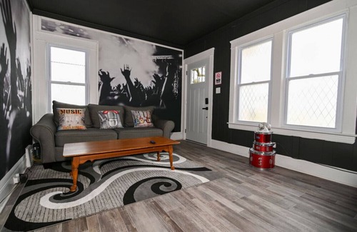 Cleveland’s Legends' Lair isn't just a place to stay; it's a home for music enthusiasts. Step into the concert-themed living room, where the essence of rock 'n' roll comes alive. Whether you're jamming out with friends or unwinding after a day of exploration, this creatively designed space sets the stage for an unforgettable stay.