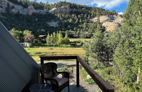 This A-frame cabin/tiny home is a one bedroom and one bath. Its perfect for 1 or 2 people. It has a walk-in shower, king bed, 42' inch smart TV, wireless internet access, AC/Heat, two burner electric cook top, a medium size under the counter fridge with small freezer, electric tea pot, single serve drip coffee maker, a small insta-pot, and all the kitchen wear you need to prepare small meals. A stay here, is an experience. You are surrounded by cliffs, valleys and mountains. Its a "small space" at 400 sq/ft, but filled with character, beauty and all the comforts of home. This is a unique “tiny home”. Nestled on a serene 2-acre parcel, our cozy cabin offers breathtaking views, vibrant sunsets, and a canopy of brilliant stars. While the cabin provides a peaceful retreat, please note that it is situated with other homes nearby. An owner-occupied house is also located on the property, approximately 40 yards away. This means you won't be in complete isolation or a backcountry wilderness setting. However, you'll enjoy a comfortable and private stay with the added assurance of nearby assistance if needed. We offer plenty of privacy and easy access to everything Durango has to offer. Work from home or get out and enjoy the area.