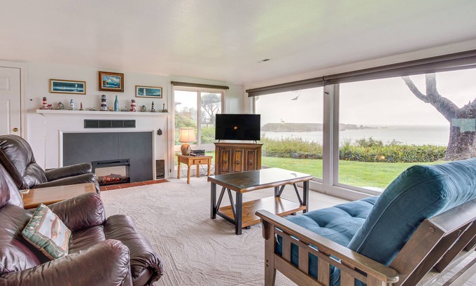 The views take center stage at this cozy 2-bedroom, 2-bath home in Coos Bay. With Lighthouse Beach as your backyard and Sunset Bay State Park just next door, this vacation rental offers ideal proximity to coastal adventure. Choose to spend your days hiking, fishing, crabbing, kayaking, paddle boarding, or cruising along the bay. Once you've got your fill of vitamin D and sea for the day, return home to cozy up by the fireplace and admire sweeping views from the comfort of your own living room.