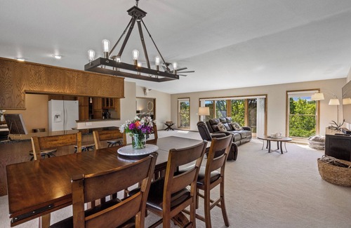 - Sunroom: A second gathering space with a high-top table for games, books, or work—and direct access to the patio. Newly added 55" TV with streaming only.