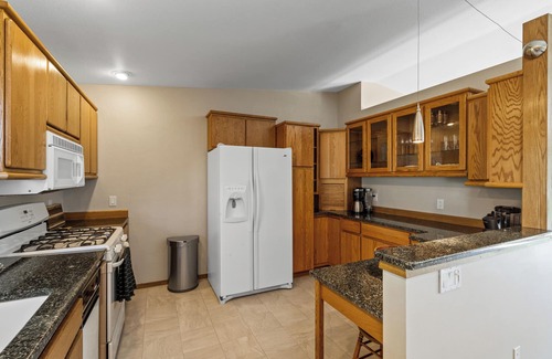 - Full kitchen with generous cabinet space and all essentials for cooking and serving.