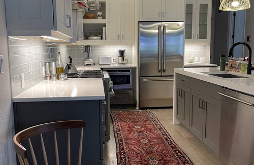 Mid-century modern decorated home, perfect for family or group exploring the Pacific Northwest. Located in historic and desirable First Addition neighborhood, adjacent to miles of hiking trails in Tryon Creek. Easy walk to downtown Lake Oswego restaurants, shopping and farmers market. Spacious primary BR with King bed, 2nd BR Queen, and American Leather Full memory foam sofa bed in 3rd BR/office. Design Within Reach furniture throughout, plus Tempur-pedic mattresses, Peacock Alley comforters, sheets and towels, L’Occitane toiletries. Well-stocked kitchen with GE high-end Monogram appliances, All-Clad cookware and other basics.