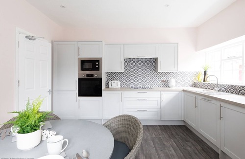 In the kitchen there is a breakfast table for four. The room has been thoughtfully equipped to offer everything you would need to comfortably self-cater for your stay including fridge, freezer, electric oven and hob, kettle, toaster and dishwasher. The hosts have also provided a washing machine, airer, iron and ironing board.