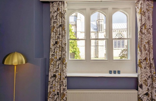 Upstairs to the first floor there is large landing with access to the family shower room and three bedrooms. To the front with views of the Cathedral is the master bedroom with a super king bed, seating area and ensuite shower room. Adjacent to the master bedroom is a twin room (which can be converted into a king room if requested at the time of booking) and to the rear there is a further double room. All rooms are finished to a very high standard with hotel quality bedding and beautiful furnishings.