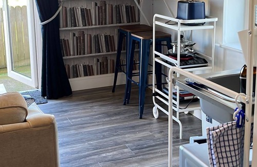 A newly furnished open plan studio with en-suite shower. King size bed with comfortable linens and towels provided with small kitchenette. Wi-Fi and to included. Views of rolling hills and sunset. On-site parking.