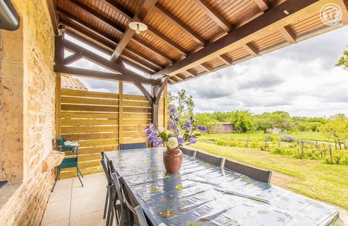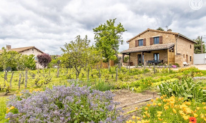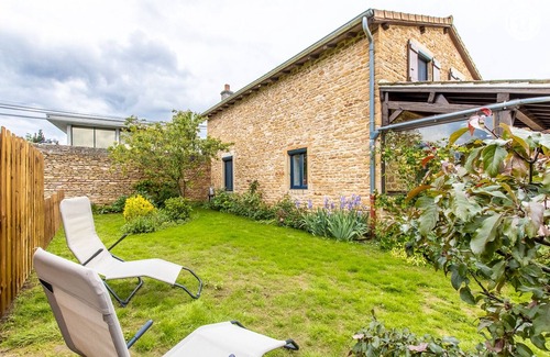 Passionate about hiking & nature, Nicole and Yves welcome you to a lovely authentic 19th century winegrower's house with character, carefully restored, nestled on a vast family property of 7000m² steeped in history - a former wine estate of which a bucolic remains mini vineyard nestled at the foot of the gîte - including a natural meadow with orchard (cherry trees, apple trees, plum trees, quince trees, pear trees, peach trees / picking possible with the owners' agreement) where free-roaming hens circulate during the day, to the delight of children! Quiet residential area nestled in the very heart of the superb vineyards of the Mâconnais, a stone's throw from the charming wine-growing & commercial town of Charnay-lès Mâcon, urban & rural, with its own AOC, a rich heritage (including a Romanesque church listed Xth nearby) & all amenities. Privileged environment totally soothing, in the hollow of a superb landscaped setting hilly with vineyards, meadows & wooded hills. Very comfortable cottage. Ultra spacious. Warm country character with contemporary accents of "country chic" spirit steeped in charm. Very cozy. Large sheltered terrace adjoining a pleasant charming intimate garden, landscaped & flowered with great care. Adjoining private courtyard, natural petanque ground with ping-pong table. Beautiful unobstructed view of the vineyards, the surrounding countryside & the Mâconnais mountains. Composition: Detached house adjoining the owners' home (total independence without vis-à-vis). Wireless. Electric heating. Wood pellet stove. Ground floor: living room-kitchen-lounge, 1 bedroom (double bed 160x200cm), shower room (shower/WC). 1st floor: 2 bedrooms with Orange TV package (each with 2 single beds 80x200cm that can be combined into a double bed 160x200cm), relaxation room (1 sofa), shower room (shower/WC). Covered terrace + garden + bike room + private parking. Common land (7000m²). All amenities 1.5 km.