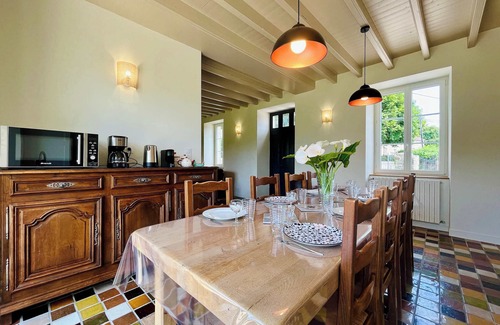 Located in a peaceful and green setting, this accommodation offers easy access to the Normandy countryside. Enjoy walks, cycling, and tranquility, while being just minutes away from local shops and cultural sites. An ideal place for a relaxing and authentic stay.