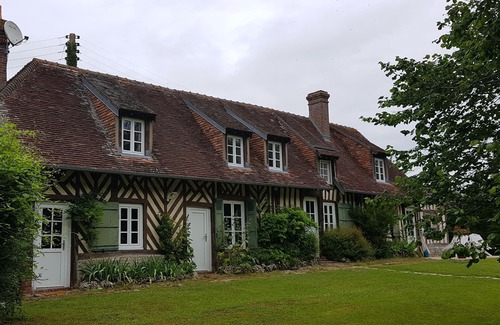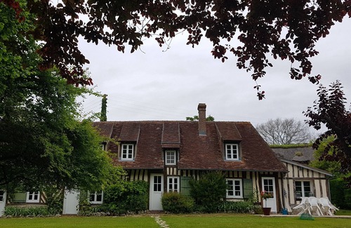 Beautiful timbered farmhouse, typical of the architecture of Norman Pays d'Auge, in a green and peaceful setting between sea and countryside, 5 bedrooms.