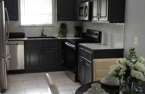 Welcome to your home away from home! This charming three bedroom residence is the perfect combo of classic and contemporary. My home features fresh interior paint, new flooring, 10 ft ceilings and fully equipped laundry room all located in a very quiet neighborhood so you can enjoy nice tranquil days and evenings. The airport, shopping ,entertainment and downtown are just minutes away! Here you'll be close to the grocery stores and major roadways that take you across the city!