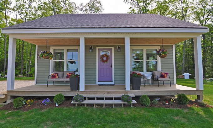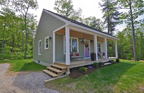 Nestled between Lake Winnipesaukee and Newfound Lake on a mountaintop ON 13 PRIVATE ACRES sits a newly constructed, beautifully decorated cottage. Gorgeous views accompany this romantic and PRIVATE Meredith NH getaway, so bring your camera!! Features a large single bedroom with a huge king size bed.