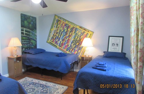 Modernized 1869 home, full of modern conviences, wireless WIFI, yet it still has its historical charm close to the Civil War Battlefields, Gettysburg, wineries, restaurants, antiquing, orchards, historical homes, and theater. Free laundry, parking, kitchen, and common area. Lovely grounds and porch to relax on. Easy day trips to DC, Baltimore, Hershey, Lancaster, Shenandoah Valley, W VA. Near several colleges, plus Caledonia, and Michaux State Parks and Application Trail. Go sightseeing, then come back & relax in 5 bedrooms. 1: has 3 twins and 2 of the twins convert to a king with a private bath. 2: has a queen bed, tv, a comfortable chair to quietly work or relax and read. The. attached bath has a large walk in shower. 1&2 are on the main floor. 3: has 3 twins, 2 convert to a king with attached bath. 4: has 2 twins and a place to sit and work or read. 5: 4 twin beds or 1 o4 2 kings with its own bath. Well stocked kitchen with plenty of dishes, pans, enough for all 14 guests.