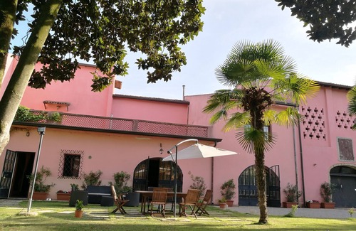 The structure is on two floors. On the ground floor: entrance hall, equipped kitchen, TV room, reading room, bathroom, laundry room. On the first floor there are three large rooms furnished with original period furniture and equipped with private bathroom with shower, air conditioning, independent heating and Wi-Fi.