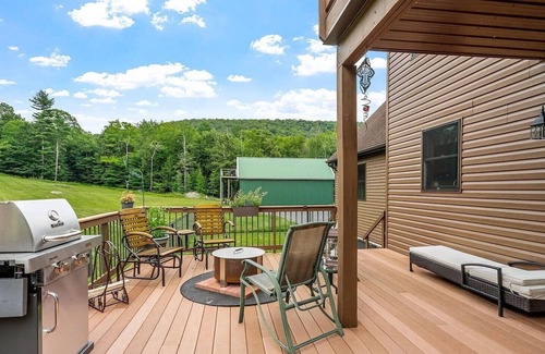 Bring the whole family and some friends to relax in this Upstate Mountain retreat just up the street from The Great Sacandaga Lake. This peaceful, spacious home is sure to bring the family together for some quality time. With a beautiful gas fireplace to keep you warm in the winter, and acres of privacy to explore in the summer, this retreat is perfect any time of the year. A quick 30 minute drive from Saratoga Springs, and about 3.5 hours from Boston or NYC, it's easy to escape into nature. The stunning "see-through" fireplace will be the first thing you notice when you walk through the door. The large inviting living room, kitchen and dining room have a great flow, allowing for large groups to comfortably enjoy the space. On the main level you will find two bedrooms with queen beds, one full bathroom, and one half bath. Upstairs is a nice loft area with a futon, a beautiful master bedroom and bath, and a fun "bunk room" with eight twin beds. The walkout basement has arcade games, darts, a pool table, smart TV, and plenty of comfortable seating. Off the dining room is a great deck to enjoy with two firepits (one propane, and one wood burning), a propane grill, and lots of seating. Our home is about 1.5 miles from The Great Sacandaga Lake. Take a trip to one of the many parks around the lake to enjoy a day at the beach. Or get out on the water by renting a pontoon from Edinburg Marina a quick 10 minute drive away. We are about 45 minutes from downtown Lake George, 30 minutes from Downtown Saratoga Springs (about 40 minutes from the track) and 1 hour from Gore Mountain. Our home is on hundreds of miles of snowmobiling trails and 43 private acres. It is a beautiful place to bring friends and family together for true quality time.